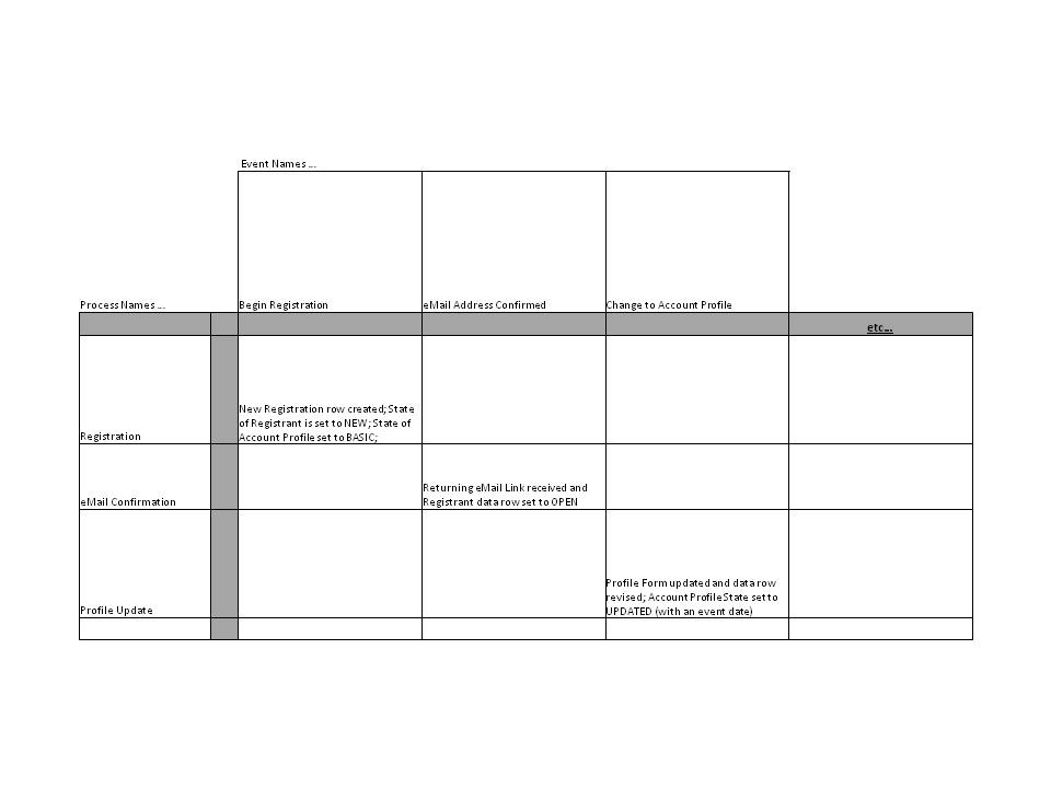 By reviewing and comparing each of these models to the others, we can create a list that has each component in each model aligned and “Checked Off” with components in the other models.  For example: A Process and an Event item should be found to describe the same business event from their modeling perspectives.  An Event should be aligned with the appropriate data components to determine that the event can, in fact, begin with a certain condition of the data and end with another.  The evolution in a row of data in a Data Entity should align with a State Transition that reflects and depends on this data transformation.